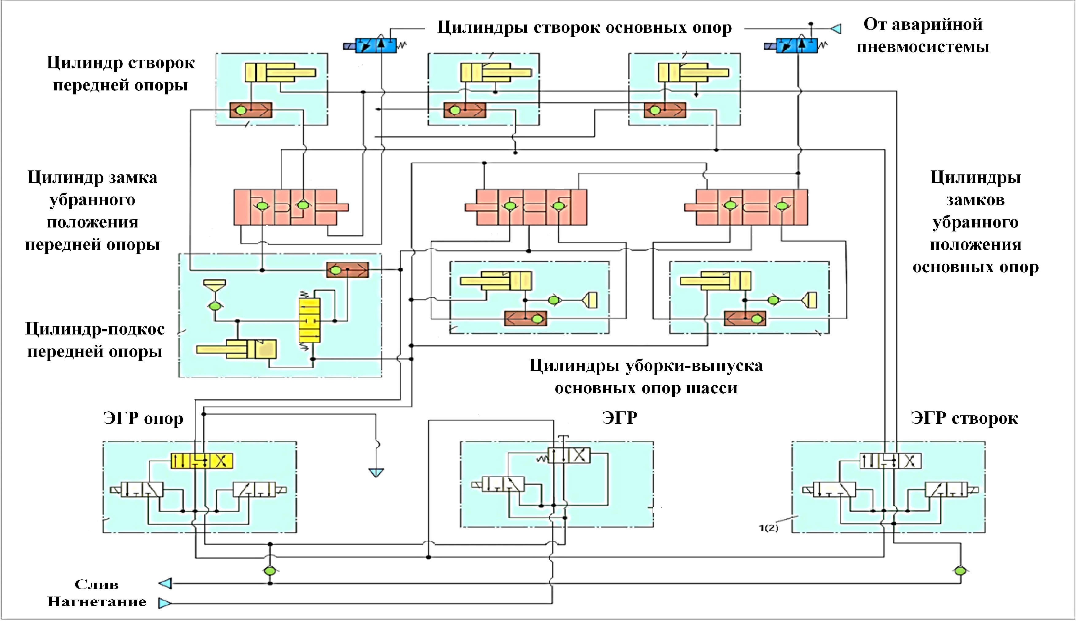 Рисунок 1 – Система уборки-выпуска шасси. Схема принципиальная гидропневматическая