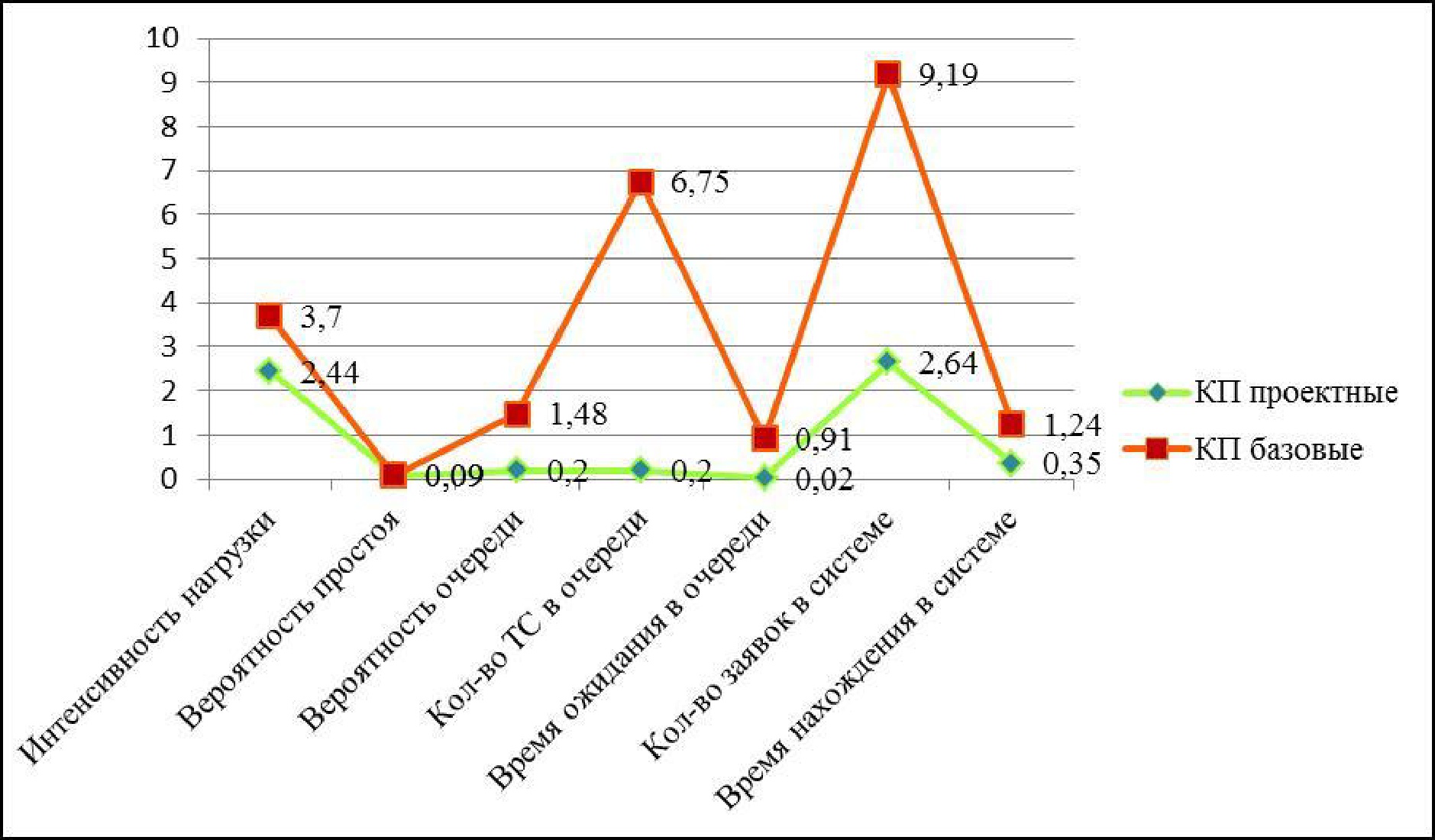 Рисунок 4 – Сравнение базовых и проектных характеристик пунктов контроля въезда