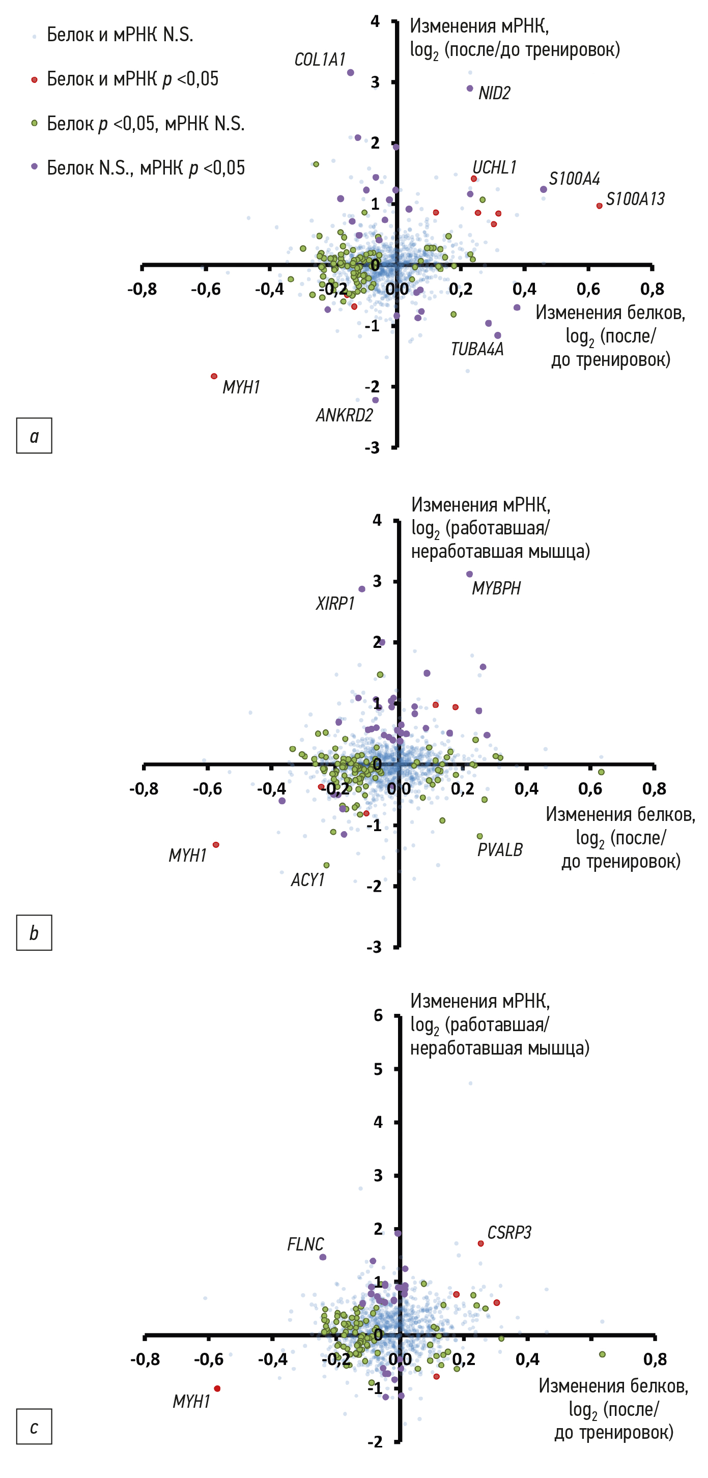 Цель исследования — изучить влияние регулярных силовых тренировок на изменение протеомного профиля (количественный панорамный масс-спектрометрический анализ) скелетной мышцы и оценить, коррелируют ли эти изменения с изменением экспрессии соответствующих мРНК (секвенирование РНК).