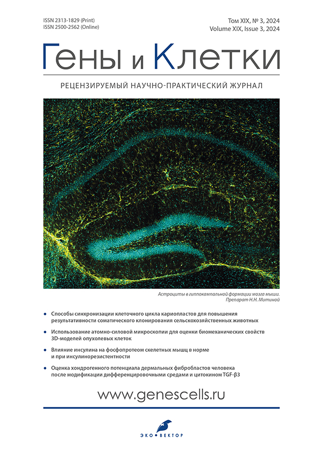 Материалы и методы. Дермальные фибробласты человека и мультипотентные мезенхимальные стромальные клетки кролика модифицировали при помощи среды для хондрогенной дифференцировки StemPro или рекомбинантного белка TGF-β3. Экспрессию генов, ответственных за хондрогенез (Acan, Tgfβ3, Col2α1, Comp), измеряли с помощью полимеразной цепной реакции в реальном времени (real-time PCR) методом ΔΔCt.