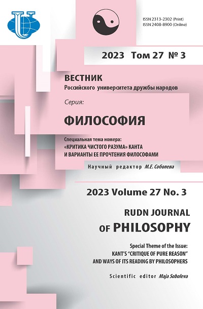 - Выпуск: Том 27, № 3 (2023): «КРИТИКА ЧИСТОГО РАЗУМА» КАНТА И ВАРИАНТЫ ЕЕ ПРОЧТЕНИЯ ФИЛОСОФАМИ