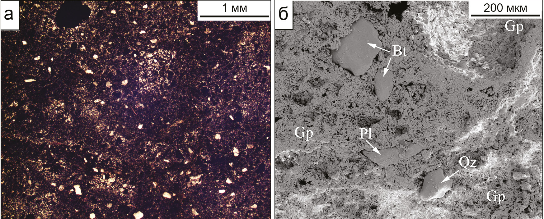 Hereinafter: Pl – plagioclase, Bt – biotite, Gp – gypsum, Qz – quartz.
