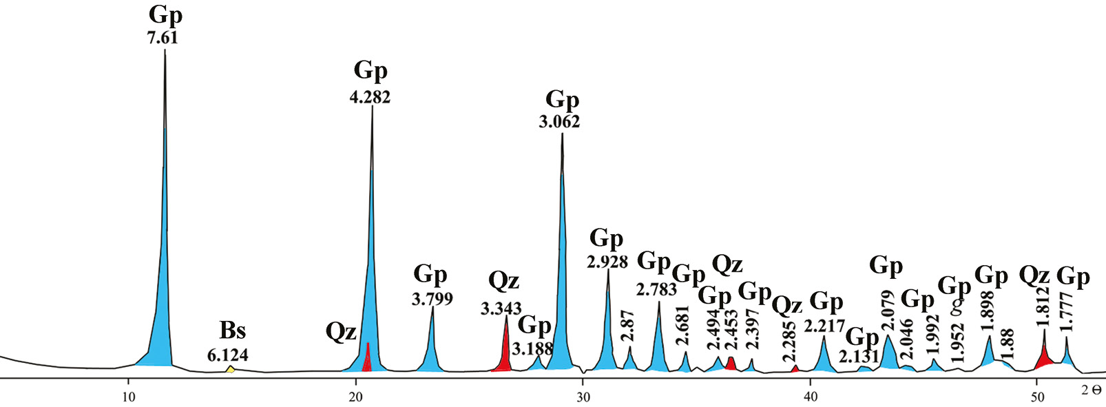 Fig. 6. X-ray diffraction pattern of gypsum material (sample GD-153-9). Bs – bassanite.