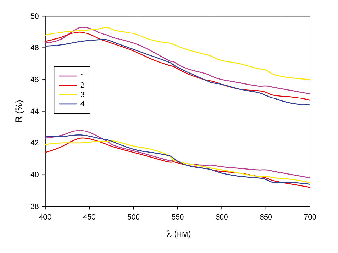 Рис. 6. Спектры отражения маковицкиита и купромаковицкиита (оригинальные и литературные данные).