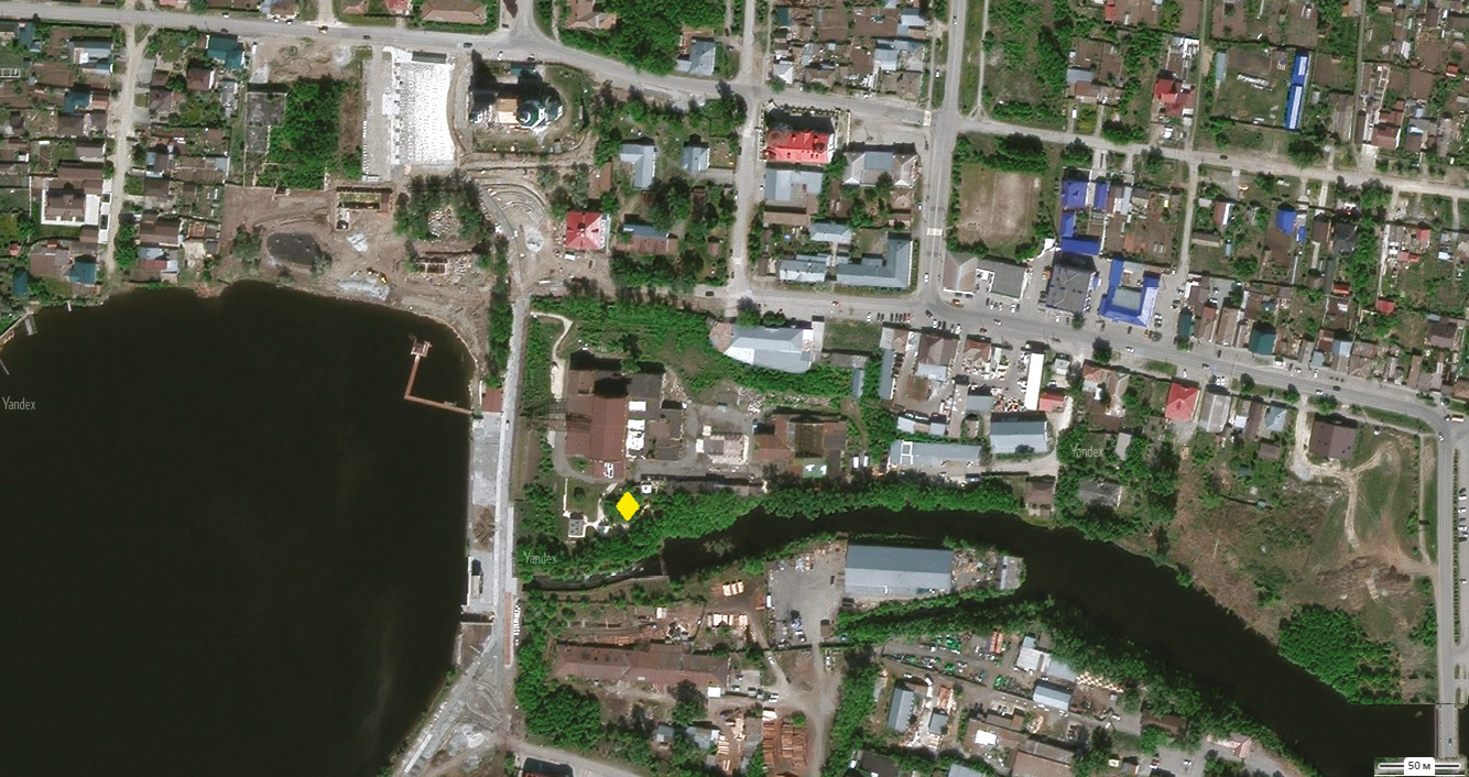 Fig. 1. Location of the ironwork plant in the center of Sysert. The place of slag sampling is indicated by a rhomb (based on Yandex.Maps).