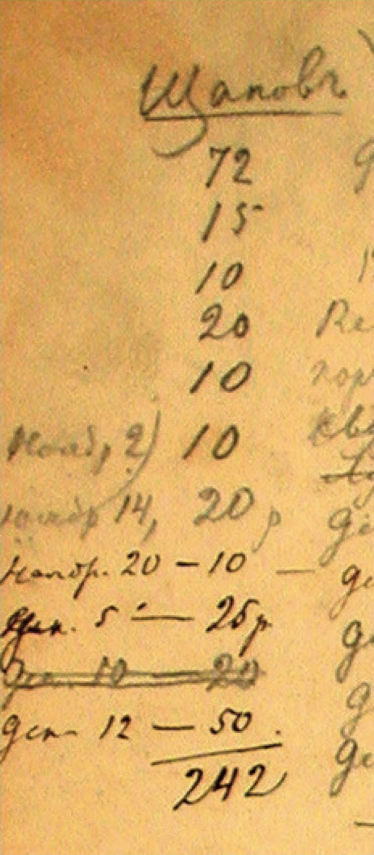 Fig. 8. The list of fees in the notebook of F. M. Dostoevsky for September 1873