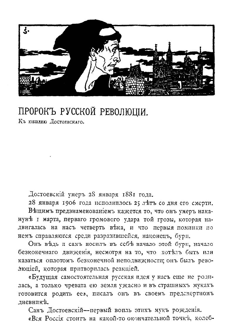 Илл. 1. Первая страница статьи «Пророк русской революции (К юбилею Достоевского)» из журнала «Весы» (1906, № 2)
