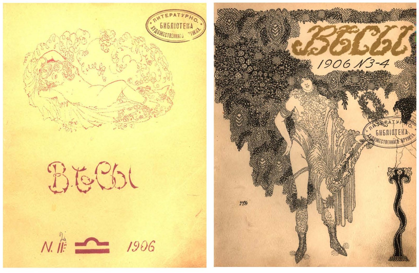Fig. 3. Title pages of the Vesy journal (1906, no. 2 and 1906, no. 3 and 4), where an article by D. S. Merezhkovsky “The Prophet of the Russian Revolution (For Dostoevsky's anniversary)” was published