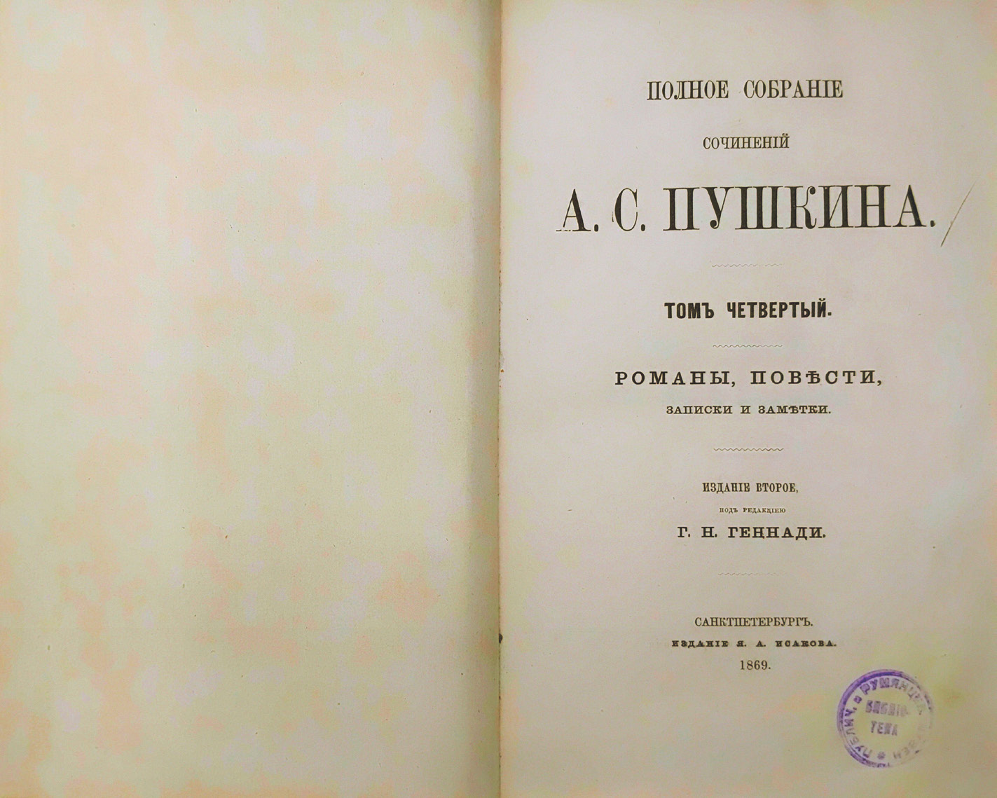 30 Сочинения Александра Пушкина: в 11 т. СПб., 1838–1841. Редакторами стали П. А. Вяземский, В. А. Жуковский, В. Ф. Одоевский, П. А. Плетнев (см.: [Муратова: 581]).