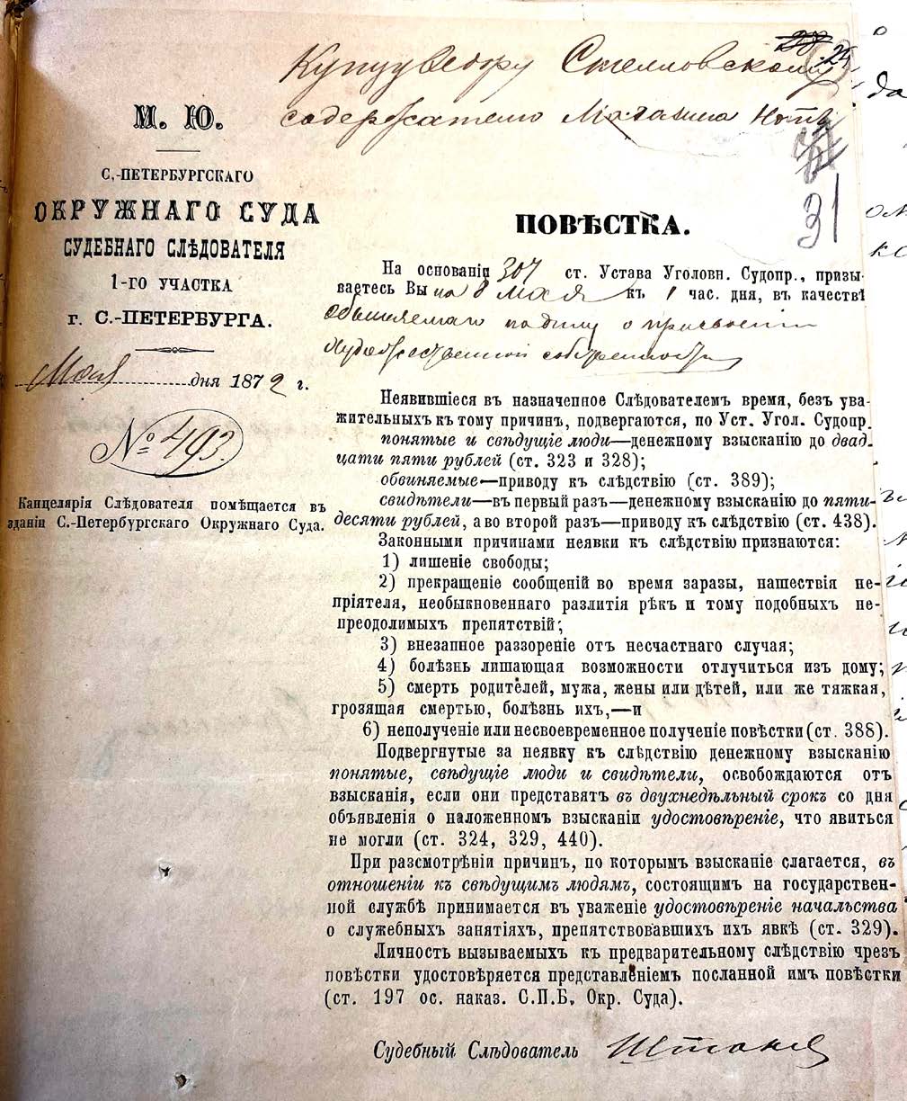 Илл. 2. Одна из неполученных Стелловским повесток33