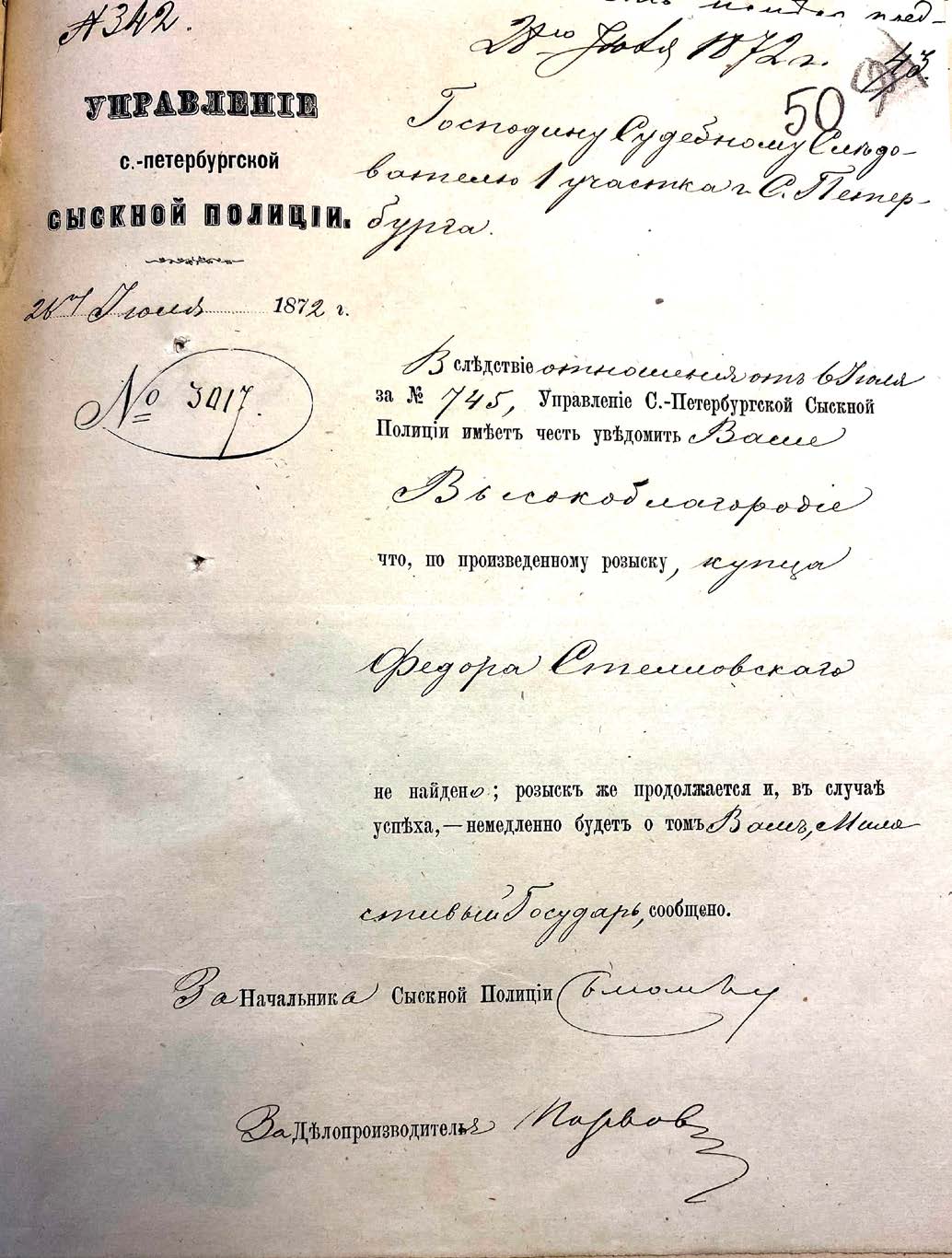 Fig. 3. Conclusion from the St. Petersburg Detective Police Department that it was not possible to find Stellovsky