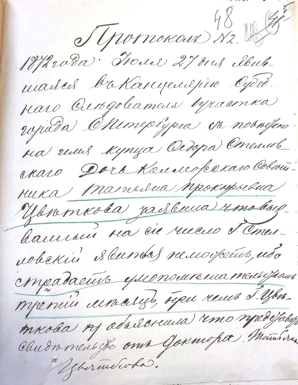 «…мнѣ кажется Гнъ Цвѣтугинъ21 слишкомъ мягко и робко принялся за дѣло! Ну какъ же можно три раза ходить и допустить его [Стелловского] не сказываться дома?»22.