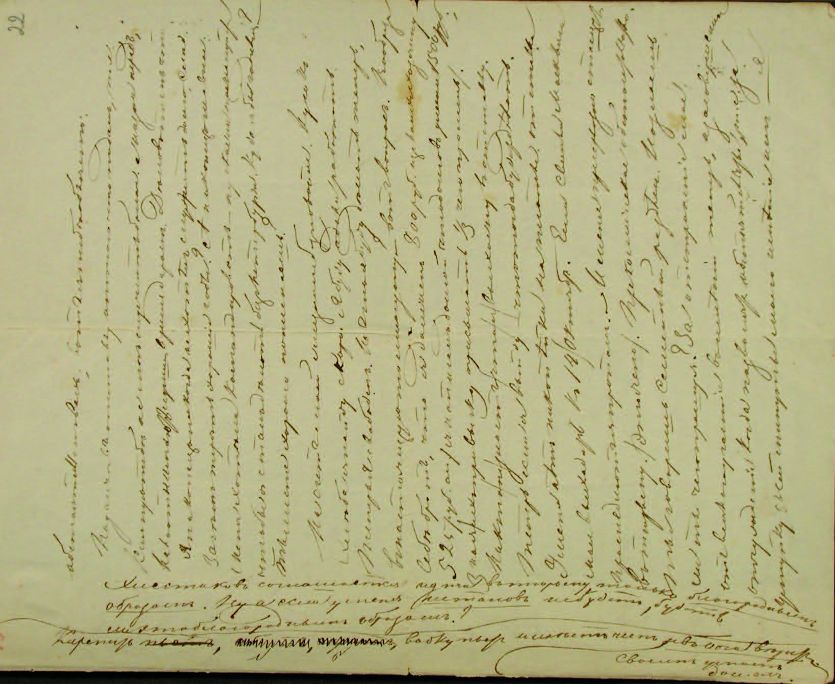 Fig. 1. The last page of the letter of F. M. Dostoevsky to M. M. Dostoevsky dated September 30, 1844 (RSL. F. 93.I.6.11. P. 22)