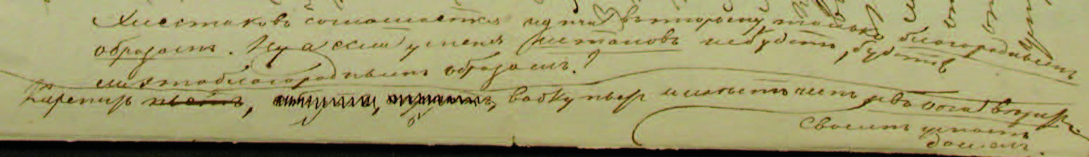 Fig. 2. The handwritten entry by F. M. Dostoevsky with three crossed out words and shorthand characters below them