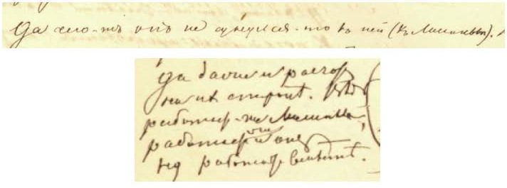 Fig. 5. Spelling of the words “probable” and “Polack” in Dostoevsky's notebooks