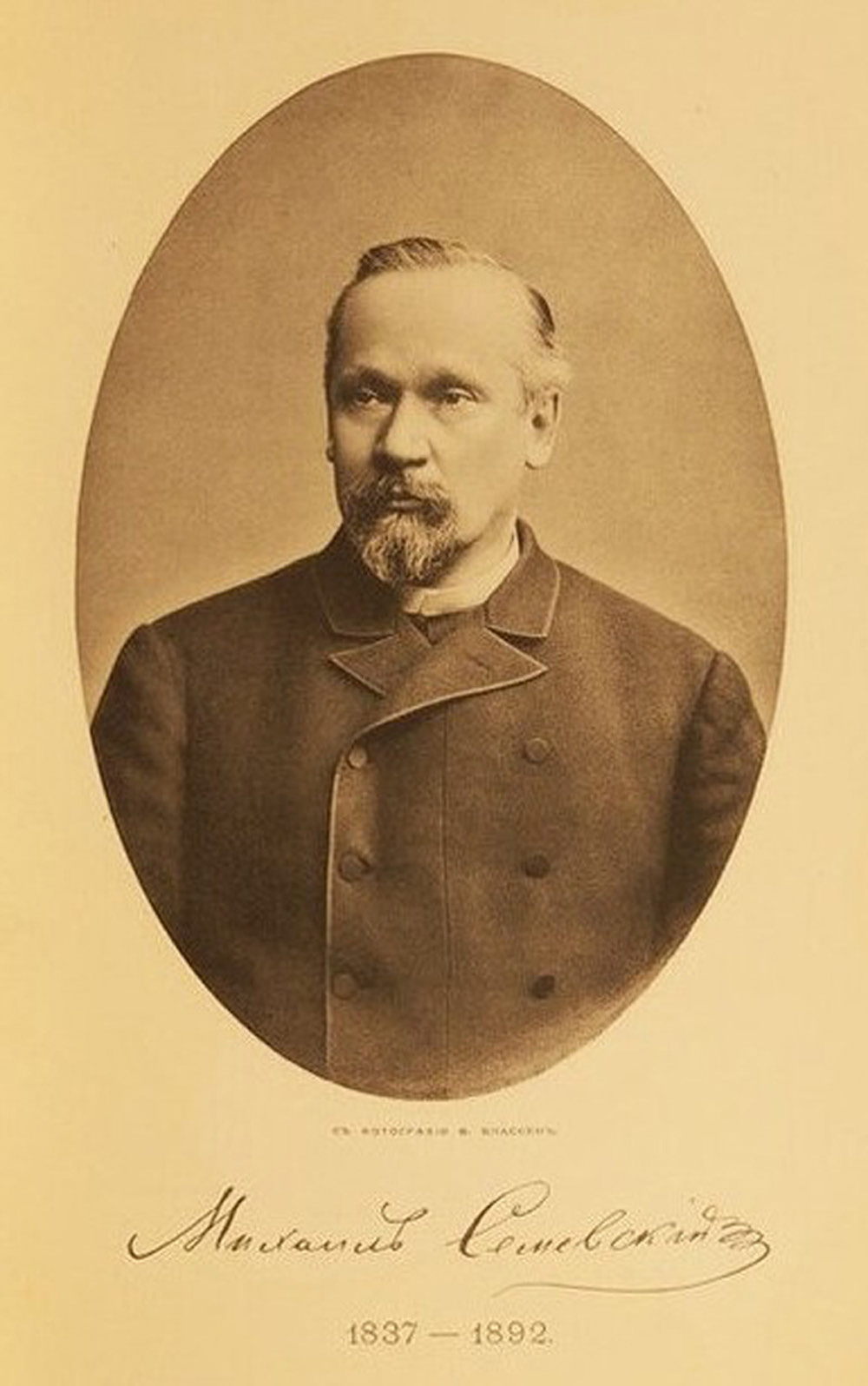 Михаил Иванович Семевский (1837–1892) — русский историк-документалист, журналист, общественный деятель, библиофил, археограф, редактор-издатель крупнейшего журнала «Русская Старина» в период с 1870 по 1892 г. (журнал издавался с 1870-го до 1918 г.). В вышедших в свет при его жизни 267 книгах этого «ежемесячного исторического издания» (как гласила надпись на обложке) было опубликовано около 300 мемуаров, записок, очерков воспоминаний и несколько тысяч писем, актов, указов, некрологов и библиографических листков. М. И. Семевский — один из первых историков, который стремился пробудить интерес у читателя к русской истории. Издание было востребованным у читателей — тиражи журнала «Русская Старина» доходили до 6 000 экземпляров [Брокгауз, Ефрон: 322]. В 1895 г., после смерти Семевского, сотрудница журнала Вера Васильевна Тимощук (1853 — после 1907) при содействии вдовы покойного редактора выпустила в свет монографию, в которой представила литературный портрет М. И. Семевского и рассказала о главных направлениях его редакторской и общественной деятельности. Семевский окончил Константиновский кадетский корпус, до 1861 г. служил офицером в лейб-гвардии Павловского полка. В 1861–1862 гг. преподавал в Смольном институте благородных девиц вместе с К. Д. Ушинским, а потом вел с ним дружескую переписку. С 1866 по 1882 г. Семевский служил в Государственной канцелярии экспедитором Главного комитета об устройстве сельского состояния, был награжден серебряной медалью на Александровской ленте за труды по устройству крестьян в Царстве Польском и Высочайше учрежденным знаком за деятельность по поземельному устройству государственных крестьян. С 1877 г. Семевский стал гласным Санкт-Петербургской городской думы, в 1882 г. он вошел в комиссию при ней, заведовавшую городскими училищами, а в 1883–1885 гг. стал товарищем городского головы. В 1877 г. был произведен в действительные статские советники, в 1882 г. — в тайные советники (см.: [Тимощук]).