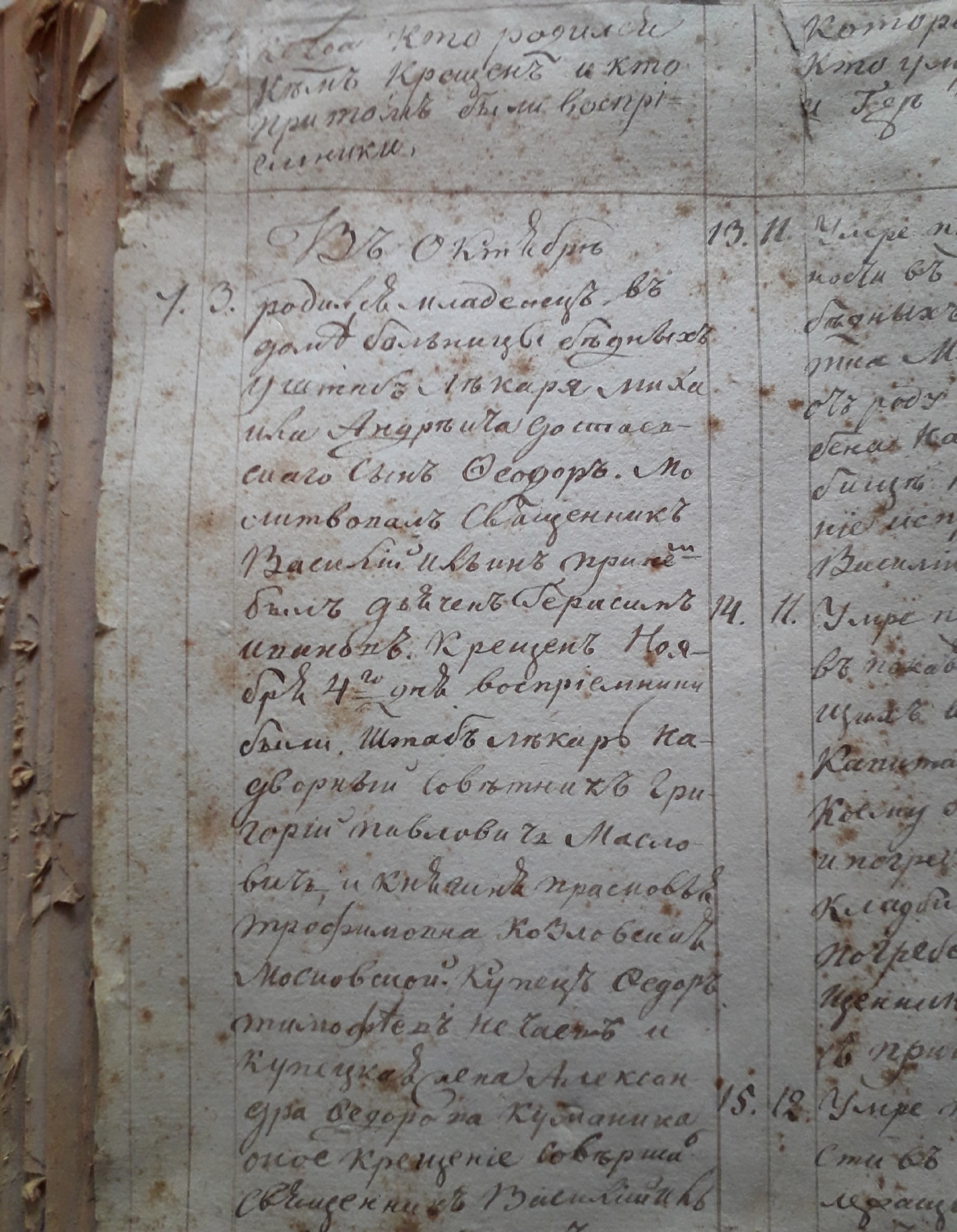 Илл. 9. Запись о рождении в «Книге для записи крещеных и отпетых в церкви Петра и Павла, что при больнице для бедных за 1814–1823 годы» (С. 148). Копия. Находится в постоянной экспозиции московской «Музей-квартиры Ф. М. Достоевского»