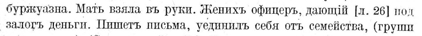 Например, в наброске на стр. 14 есть ошибочное прочтение в лаконичной первоначальной характеристике одного из персонажей, жениха: