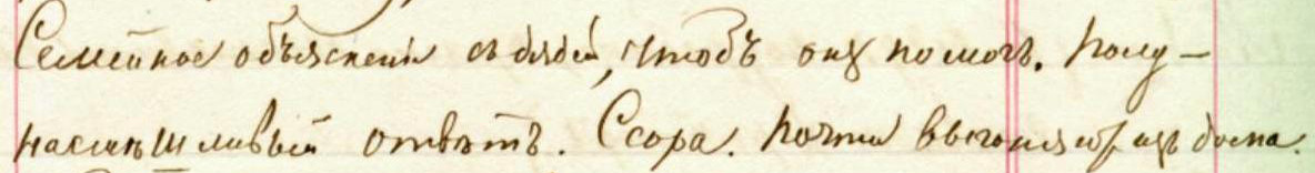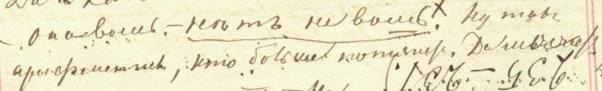 В слове «ушолъ» присутствует характерное для почерка Достоевского нижнее подчеркивание буквы «ш» (см. выше в этом же предложении слово «пришолъ»). Перед нами краткая характеристика героя, который в порыве отчаяния приходит к матери, но ничего не может ей рассказать и, так и не объяснившись, уходит.