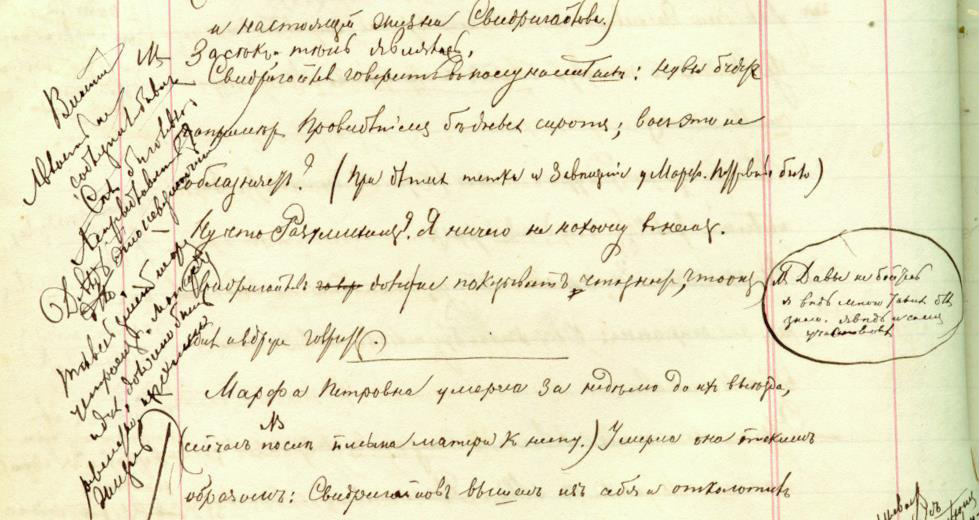 На стр. 144, где речь идет о Свидригайлове и его страстных, болезненных наклонностях, Достоевский в приписке сверху передает детскую речь, в Д30 она нивелирована: