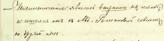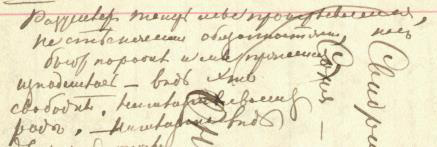 «— Насильничанiе явилось внезапно какъ мысль; а сошолся онъ съ Авд<отьей> Романовной совсѣмъ по <В Д30: на — 7, 162> другой идеѣ».