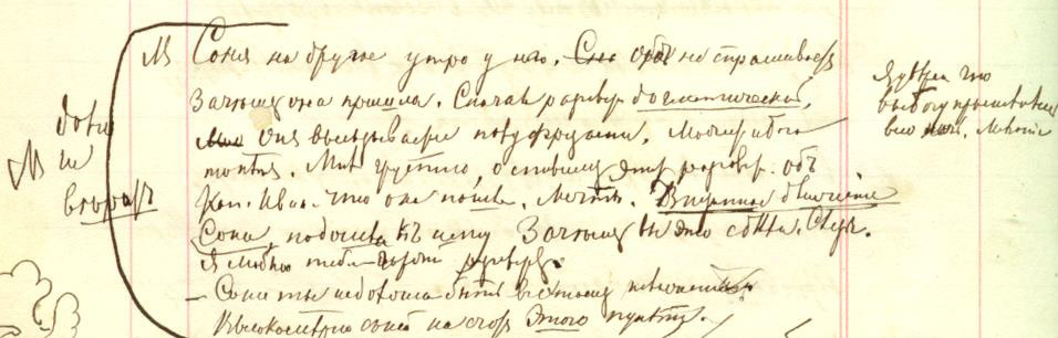 «Внезапное движенiе Сони, подошла къ нему<:> Зачѣмъ вы это сдѣлали. Слезы. Я люблю тебя — гордый <В Д30: горячий — 7, 166> разговоръ».