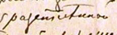 Н. А. Тарасова считает более вероятным прочтение Д30 (с исправлением падежной формы в фамилии героя): «Младшiй сынъ, растленный Свидр<игайловымъ>» — исходя из графического рисунка слова и при условии языковой вариативности (в слове «растленный» допускается написание суффикса как через «ѣ», так и через «е» 8, т. е. явное отсутствие «ѣ» в рукописи в первом случае употребления спорного эпитета не будет считаться достаточным аргументом против подобного прочтения). Главным аргументом, по ее мнению, тут выступает именно написание сравниваемых слов: предполагаемая буква «п» не похожа на себя; в предполагаемой букве «а» нет наплыва, который есть в той же букве «а» в слове «Распаленному» («молодому человѣку») ниже по тексту (и есть в принципе в написании круглых букв); т. е. в первом случае прочитывается сочетание «ст», а не «спа» и слово читается как «растленный».