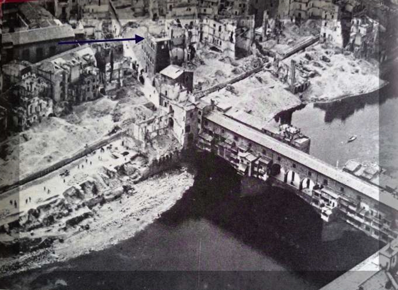 Несмотря на огромную воронку на улице Гвиччардини (см. Илл. 1), фасад дома № 8 остался невредимым и после войны, а с открытием улицы Барбадори был соединен с домом № 10 (ныне под № 2).