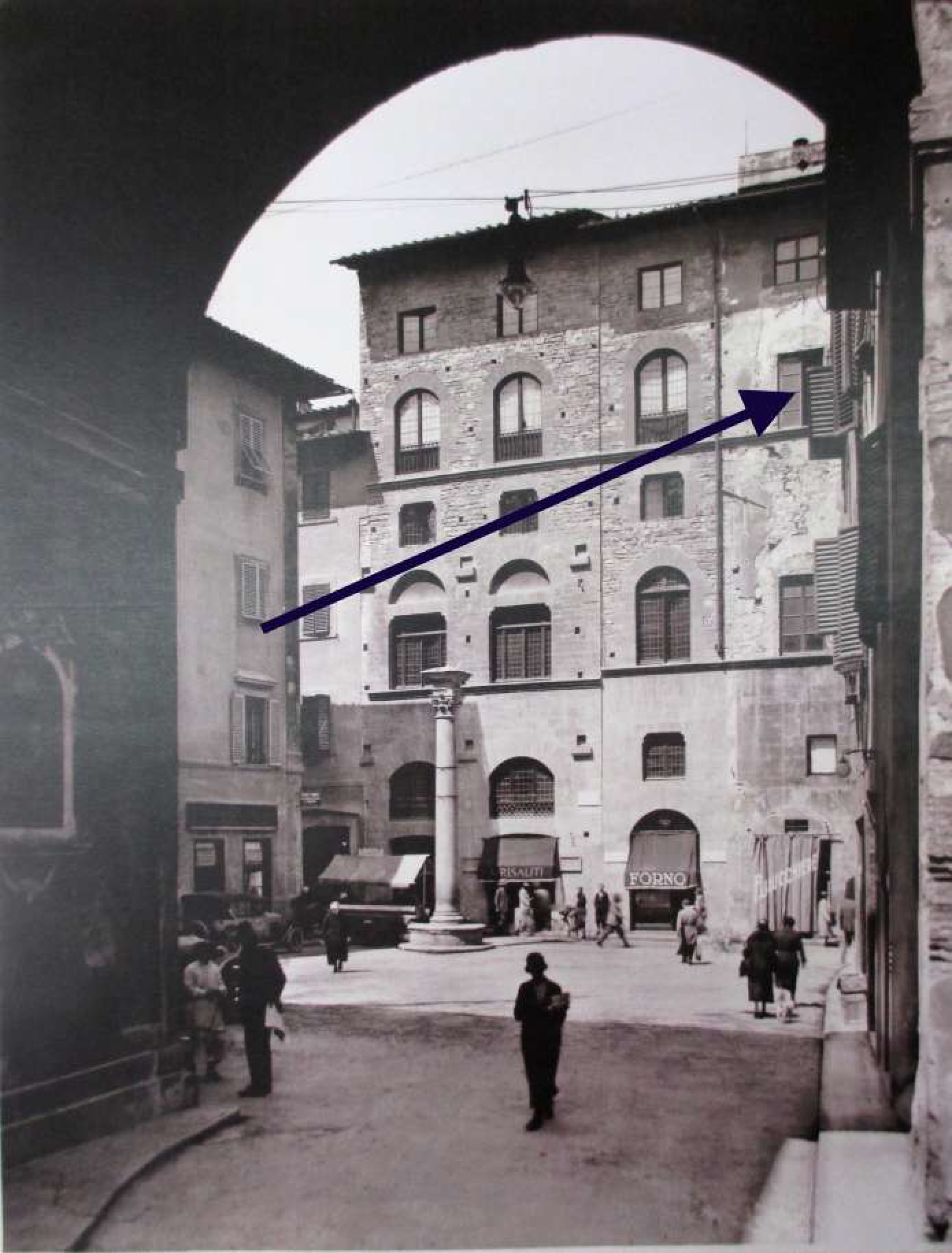 Если запись священника Церкви Святых Апостолов и Сан-Бьяджо всетаки свидетельствует, что он ее посетил, то она ценна еще тем, что может уточнить информацию о его последнем флорентийском адресе: комната находилась на 3-м этаже дома № 1 на Лоджия дель Меркато Нуово (см. Илл. 7). Она находилась в доме, принадлежавшем семье Массимилиано Фанчуллаччи (Massimiliano Fanciullacci). Владелец нанятой Достоевским квартиры был ему знаком, о чем писатель сообщал в своем письме к Соне от 29 августа (10 сентября) 1869 г. («переехали к одним знакомым хозяевам» — Д30, 291, 56), по профессии был ткачом. Возможно, это было бытовое знакомство (на рынке, например).