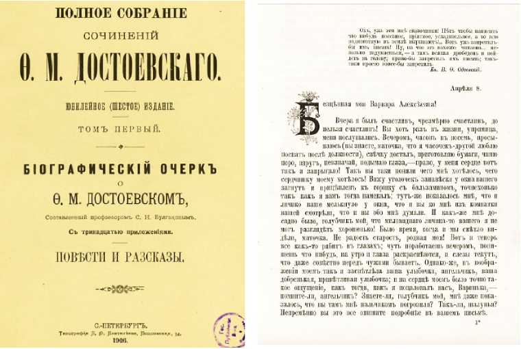 Начиная с 1881 г. А. Г. Достоевская издавала Полное собрание сочинений мужа, и до 1893 г. ею было выпущено четыре издания2. В 1894–1896 гг. права на публикацию произведений писателя она продала основателю журнала «Нива» А. Ф. Марксу, который напечатал пятое издание3. К 1906 г., в котором исполнялось 25 лет со дня кончины Достоевского, вдова решила удивить почитателей его творчества новым, непохожим на другие изданием, выпустив к тому же его в двух вариантах — дорогом и дешевом.