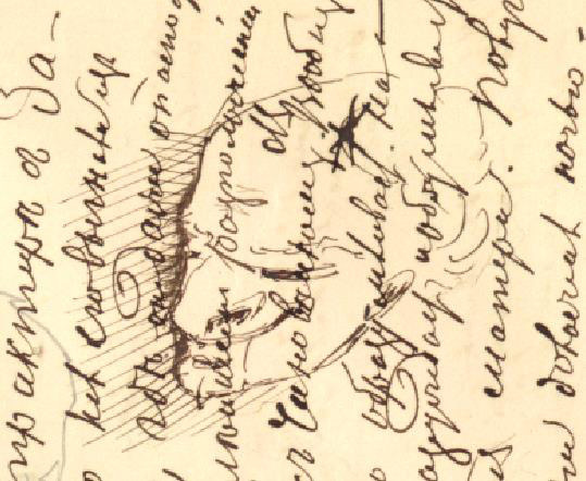 Разумеется, многие портретные рисунки, которые мы обнаруживаем в рукописях Достоевского, нам кого-то напоминают, в ряде случаев имеют несомненные прототипы, на основе которых Достоевский искал «лицо идеи», необходимое ему для того, чтобы точнее скомпоновать сюжет очередного произведения. О таких случаях много написано, и наверняка будет написано больше. Однако нельзя упускать из виду то несомненное обстоятельство, что идеографические знаки в рукописях писателя — такая же неотъемлемая и существенная часть его творческих записей, как и вербальные тексты. Основным критерием, помогающим определить прототип портретного рисунка, была и остается логика творческого процесса Достоевского, в котором участвовал характерный для определенного периода его жизни круг лиц и исторических и литературных фактов. Сосредотачиваться же исключительно на подобии линий — занятие, которое может привести к ошибкам. В конечном счете, изучая рисунки писателя, мы имеем дело с фактами его творческого процесса. Обратимся к примерам.