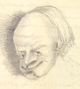 Илл. 28. Портретный рисунок Достоевского в «Сибирской тетради» (НИОР РГБ. Ф. 93. Разд. I. Карт. 2. Ед. хр. 5. Л. 15 об.)