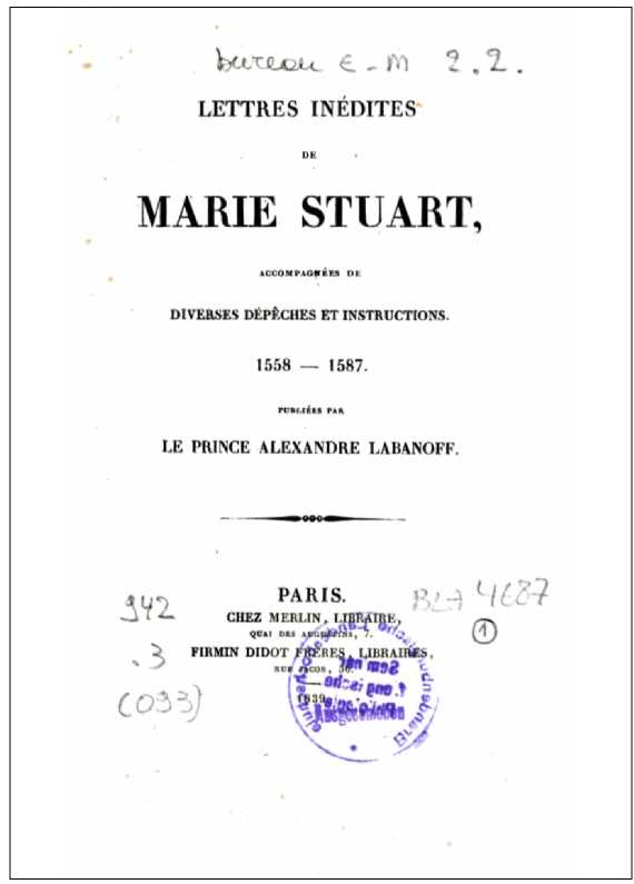 - 25. P. 5–52. (Шаль Филарет. Неопубликованные документы о Марии Стюарт. — фр.)