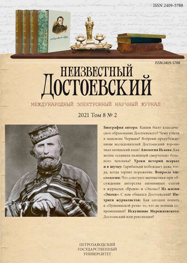 Содержание издаваемых братьями Достоевскими журналов «Время» (1861–1863) и «Эпоха» (1864–1865), в которых опубликовано много анонимных и псевдонимных статей, ставит перед исследователями задачу их атрибуции. На основании традиционных документальных (письма, гонорарная и приходно-расходная ведомости, мемуарные свидетельства), идейно-тематических и стилистических признаков в XIX– XX вв. был сформирован корпус текстов, которые однозначно приписывались Ф. М. Достоевскому, М. М. Достоевскому, А. А. Григорьеву, Н. Н. Страхову и другим авторам
