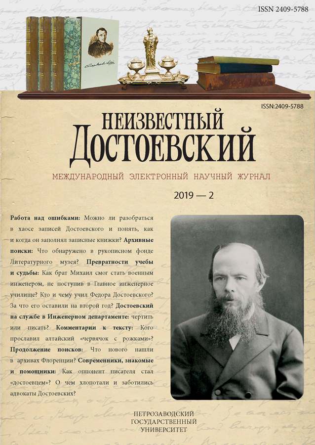 В статье вводятся в научный оборот архивные документы из фондов Российского государственного военно-исторического архива (РГВИА, Москва), дающие дополнительный материал к построению научной биографии братьев Михаила и Федора Достоевских в один из самых малоизученных периодов — 1837–1839 гг., времени поступления М. М. Достоевского в Инженерный корпус и первых двух лет обучения Ф. М. Достоевского в Главном инженерном училище. Архивные данные прокомментированы материалами печатных источников эпохи, большею частью также вводимыми в научный оборот впервые. Новые данные дают более объемное представление об учебном процессе в Главном инженерном училище в период 1838–1839 гг. В научный оборот вводятся все учебные дисциплины, курсы которых дважды, будучи оставленным на второй год, прослушал Достоевский, обучаясь в 3-м кондукторском классе, в первый и второй годы пребывания в Училище. Лаконично, но вполне конкретно охарактеризовано содержание этих курсов; в библиографическом списке перечислена учебная литература. Впервые в систематическом изложении представлены все 19 педагогов, чьи лекции в этот период слушал Достоевский. Имена восьмерых из них вводятся в научный оборот впервые. Кроме того, выявлены имена 20 педагогов, как штатных, так и привлеченных репетиторов, которые входили в экзаменационную комиссию, принимавшую у Достоевского годовой экзамен за учебный курс 1839 г. Имена семерых из них также вводятся в научный оборот впервые. Биографические данные об остальных уточнены и пополнены.