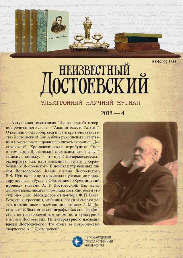 «Непрочитанное» литературное наследие жены Ф. М. Достоевского (с приложением текстов ее неопубликованных произведений)