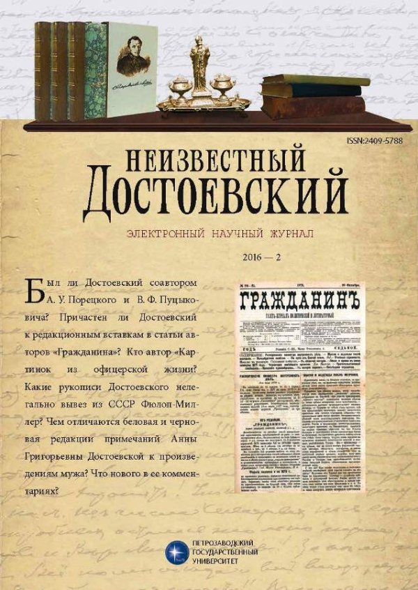 Достоевский — Соавтор А. У. Порецкого и В. Ф. Пуцыковича в «Гражданине»: опыт атрибуции