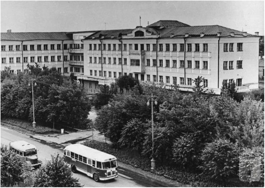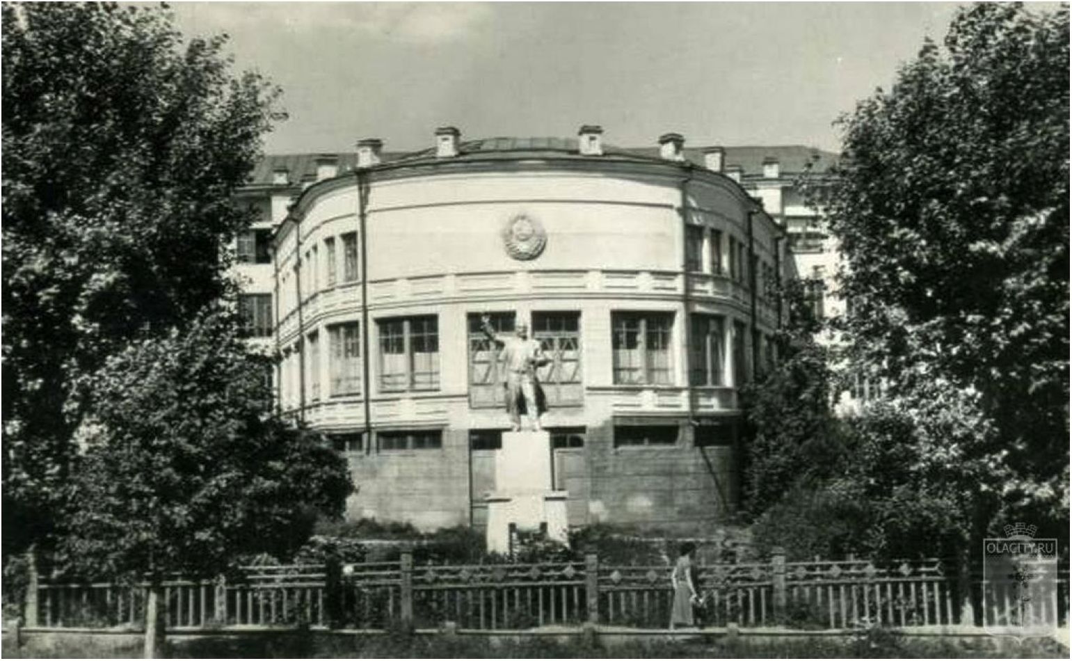 Рис. 8. Фото с сайта olacity: Дом Советов в 1960 году, в этот год в одну ночь памятник Сталину перед центральным входом был убран / Fig. 8. Photo from the olacity website: The House of Soviets in 1960, this year, in one night, the monument to Stalin in front of the main entrance was removed