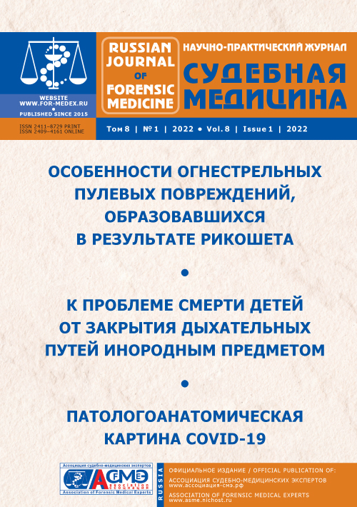 In the special forensic literature, information on the deaths of children from mechanical asphyxiation as a result of closure of the airways by foreign objects is small and fragmentary, a small number of works are devoted to them, despite the fact that the social significance of this problem is great.