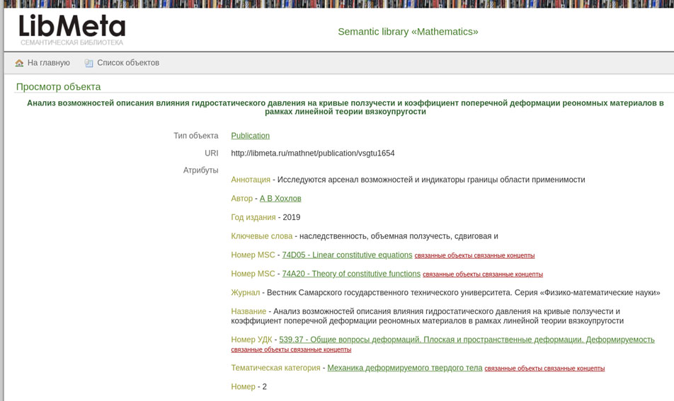 Рис. 1. Пример ГЗ журнала в семантической библиотеке LibMeta