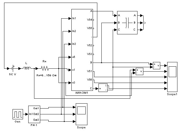 Модель системы ЧИП-Д приведена на рис. 5 и предназначена для изучения статических и динамических характеристик электропривода с последовательным ЧИП с резонансной коммутацией.