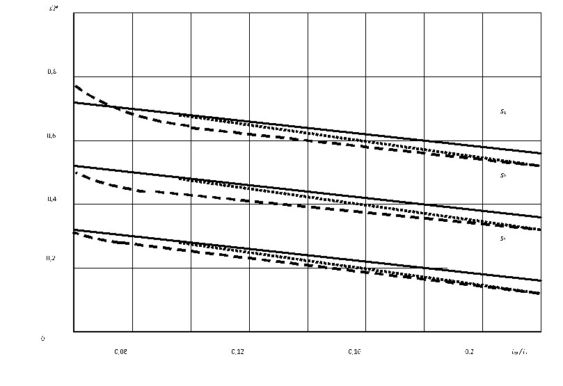 Расчетные электромеханические характеристики системы ЧИП-Д, построенные по выражению (2), показаны на рис. 6 сплошными линиями. Смоделированные электромеханические характеристики системы ЧИП-Д, полученные с помощью модели рис. 5, показаны на рис. 6 точками. Экспериментальные электромеханические характеристики системы ЧИП-Д [14] показаны на рис. 6 пунктиром. Параметры скважности на рис. 6 соответствуют следующим числовым значениям: s1=0,73; s2=0,55; s3=0,36.