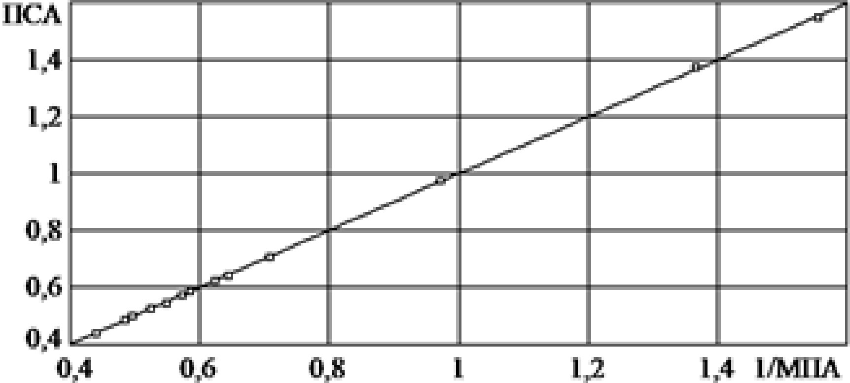 Рис. 10 и 11 свидетельствуют, что значения ПСА и 1/МПЗА достаточно близки. В работе [11] предлагается использовать вместо показателя ПСА величину 1/МПЗА, в формулу расчета которой входит меньшее число параметров. Проверим эту возможность на модели регрессии (2):