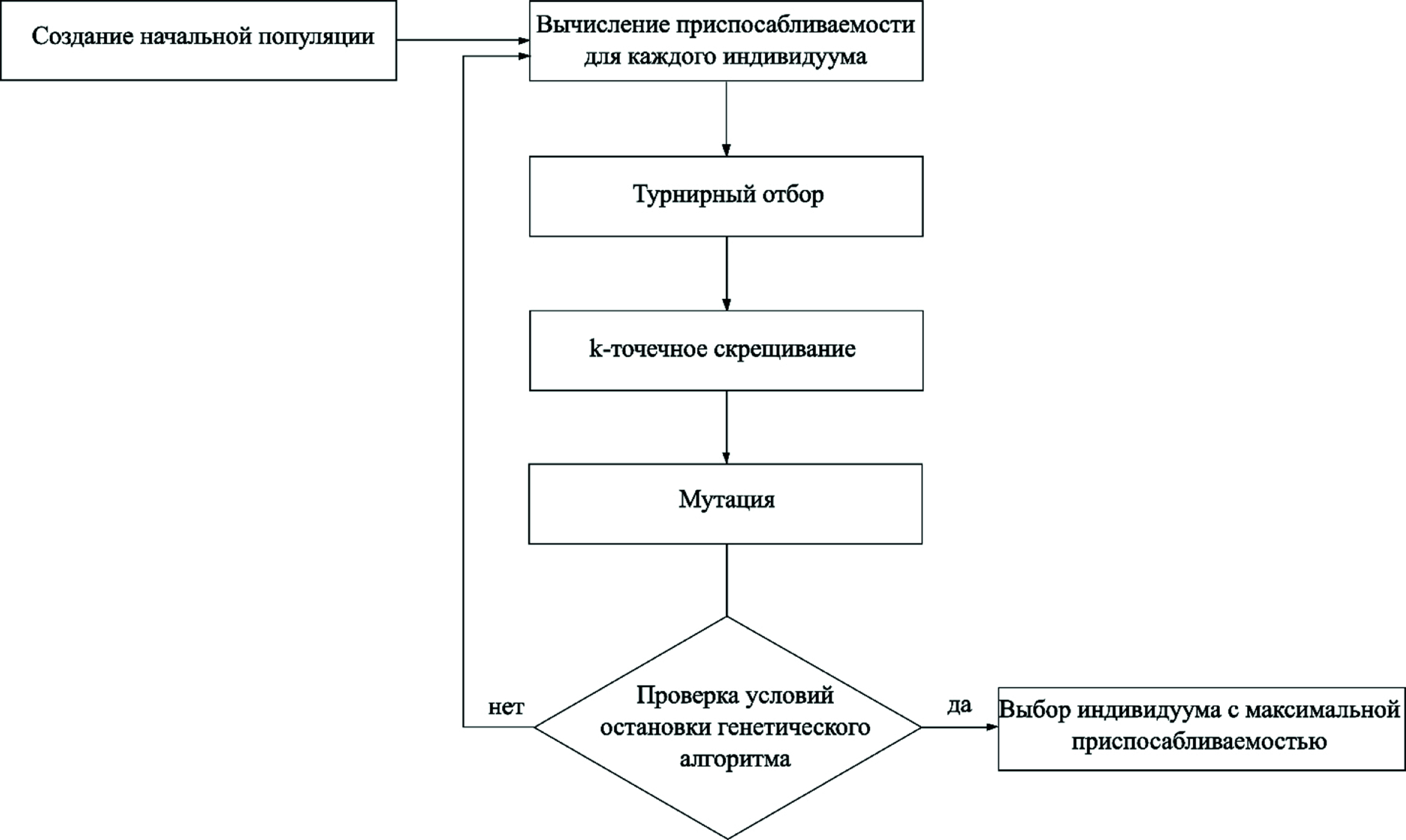 Генетический алгоритм представляет собой имитацию эволюционного процесса (рис. 2) и включает следующие этапы: отбор, скрещивание и мутацию [3].