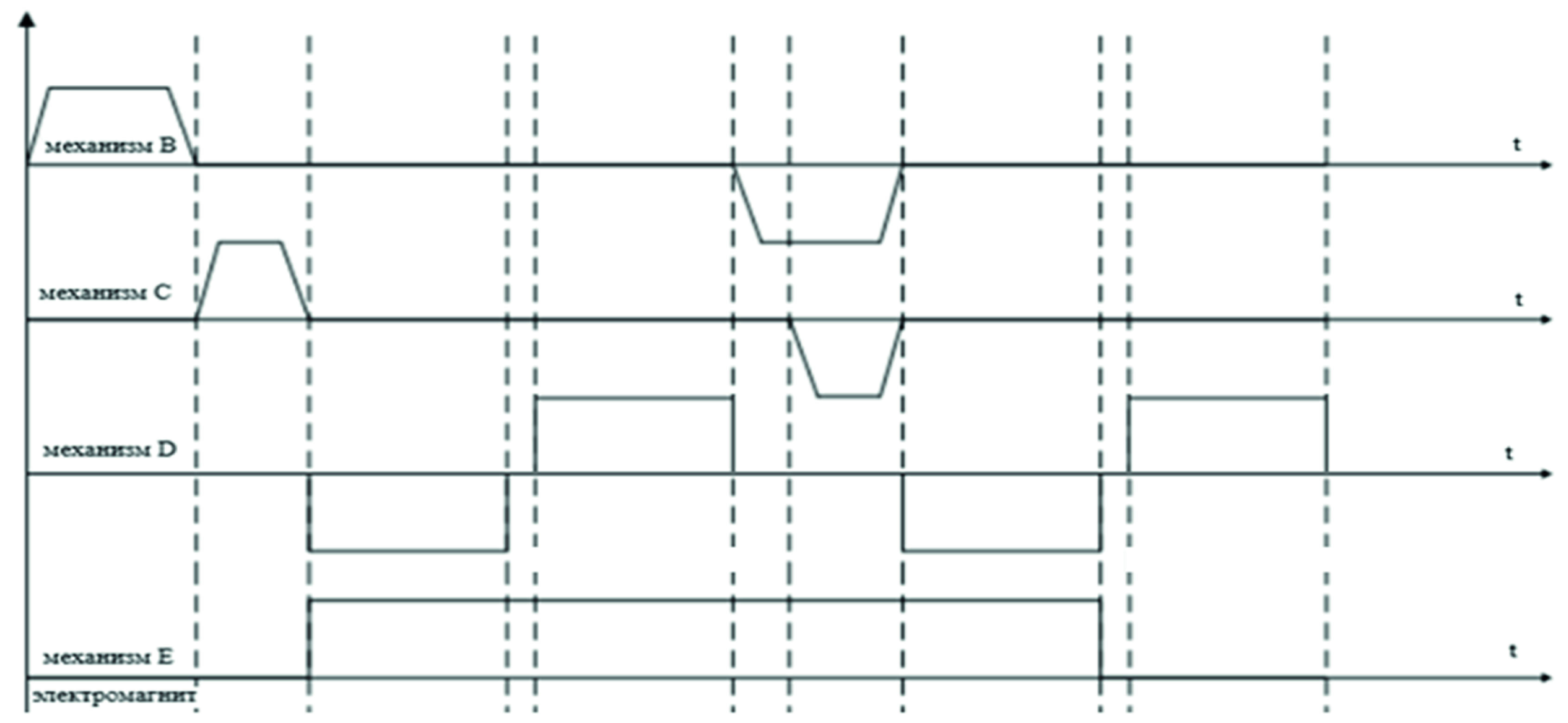Рис. 3. Циклограммы работы перемещения консольного крана с магнитным захватом