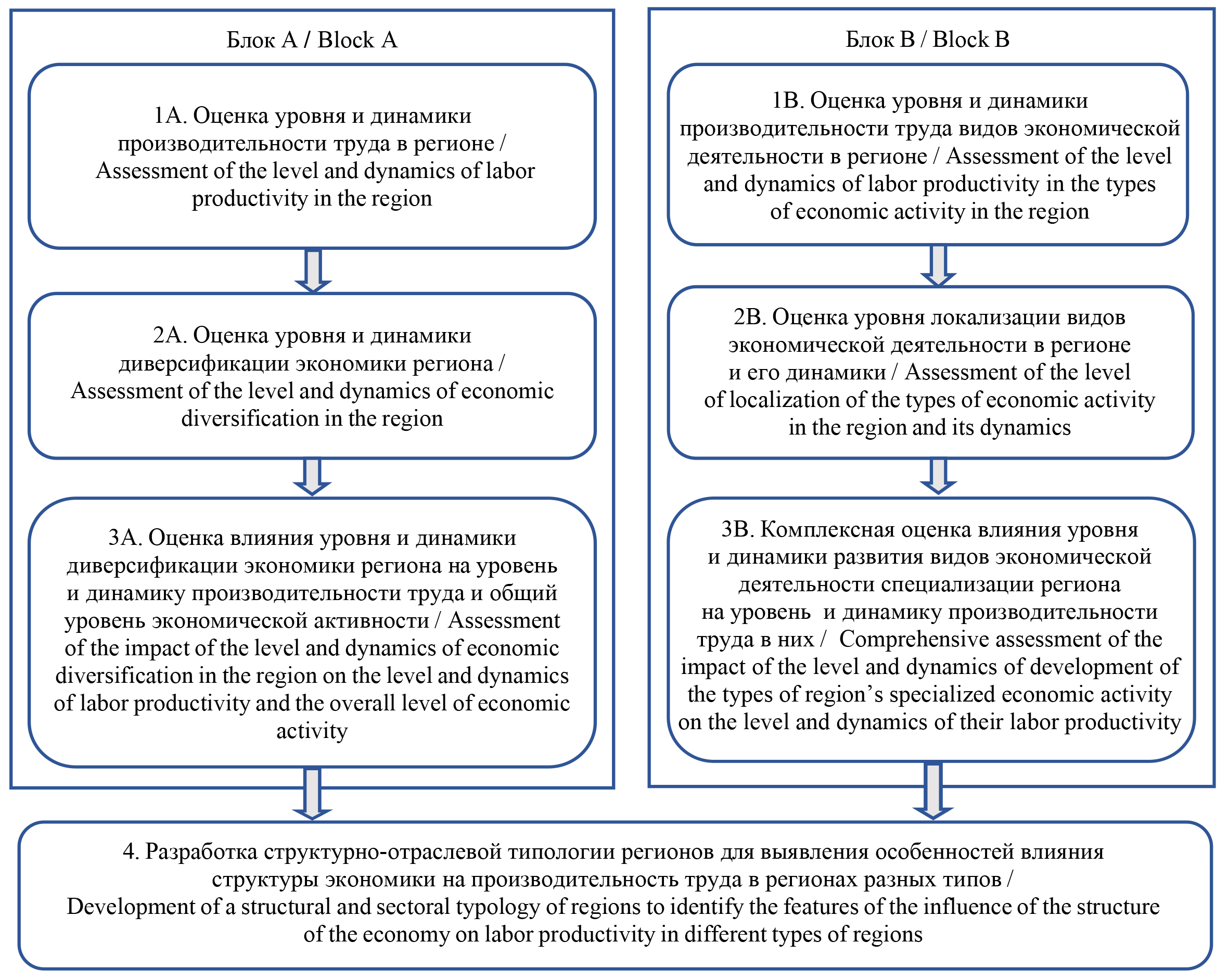 Fig. 1. Logical scheme for a comprehensive assessment of the processes of diversification of the regional economy and their impact on labor productivity