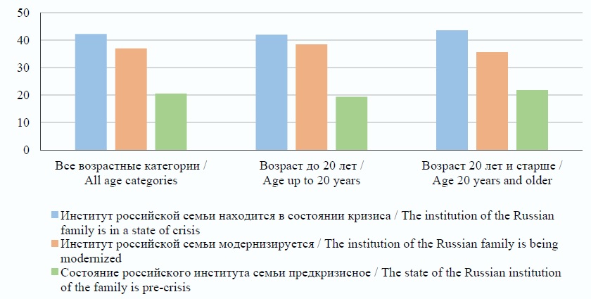 Институт российской семьи находится в состоянии кризиса / The institution of the Russian family is in a state of crisis | 37,0 | 47,6 | 42,3 |