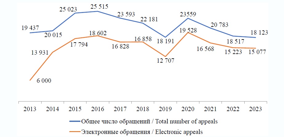 Fig. 1. Dynamics of citizens’ appeals to the Governor and the Government of the Sverdlovsk Region for 2013‒2023