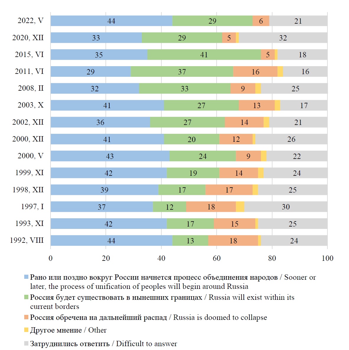 Россия будет существовать в нынешних границах / Russia will exist within its current borders | 42,9 | 48,4 |