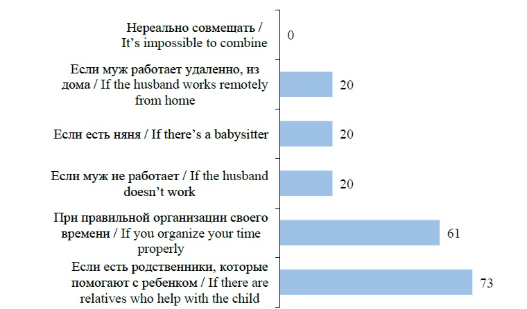 Fig. Distribution of answers to the question about the conditions under which a woman can combine family and employment during parental leave, %